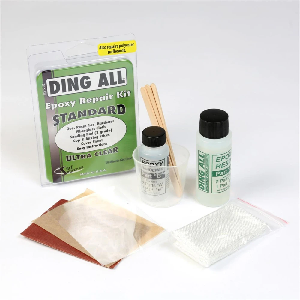 Surfboard Reparaturset auf Epoxyharz Basis fĂŒr gröĂere BeschĂ€digungen. System mit Harz und HĂ€rter. Keine Sonneneinstrahlung zum AushĂ€rten notwendig.