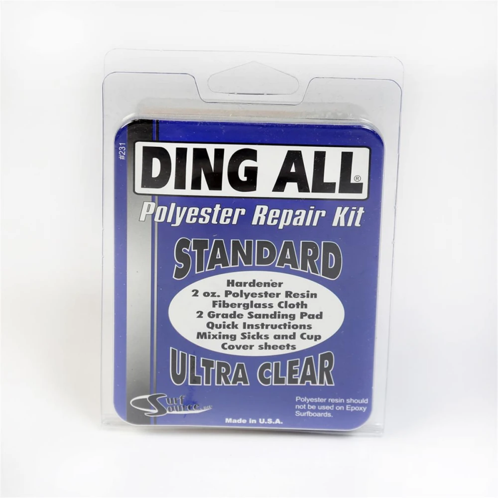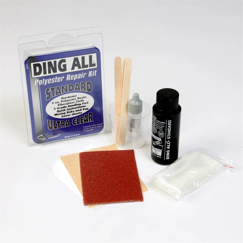 Surfboard Reparaturset auf Polyesterharz Basis fĂŒr gröĂere BeschĂ€digungen. System mit Harz und HĂ€rter. Keine Sonneneinstrahlung zum AushĂ€rten notwendig. Nicht geeignet fĂŒr die Reparatur von Epoxy Surfboards.