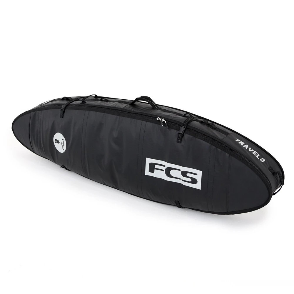 Das FCS Travel Cover geht in die nächste Generation. Die Materialien wurden verbessert und somit die Robustheit und Haltbarkeit gesteigert. Für bis zu 4 Boards (wir empfehlen drei) bietet die neue FCS Travel 3 All Purpose Black/Grey einen perfekten Schutz.
