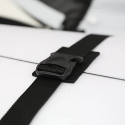 Die Boards werden nach Außen durch den 12mm HD Foam geschützt. Zusätzlich sind die Rails verstärkt und die Boards werden zusätzlich durch eine Trennschicht geschützt. Um eine maximale Fixierung zu erreichen, können die Boards im Inneren der Boardbag angeschnallt werden.