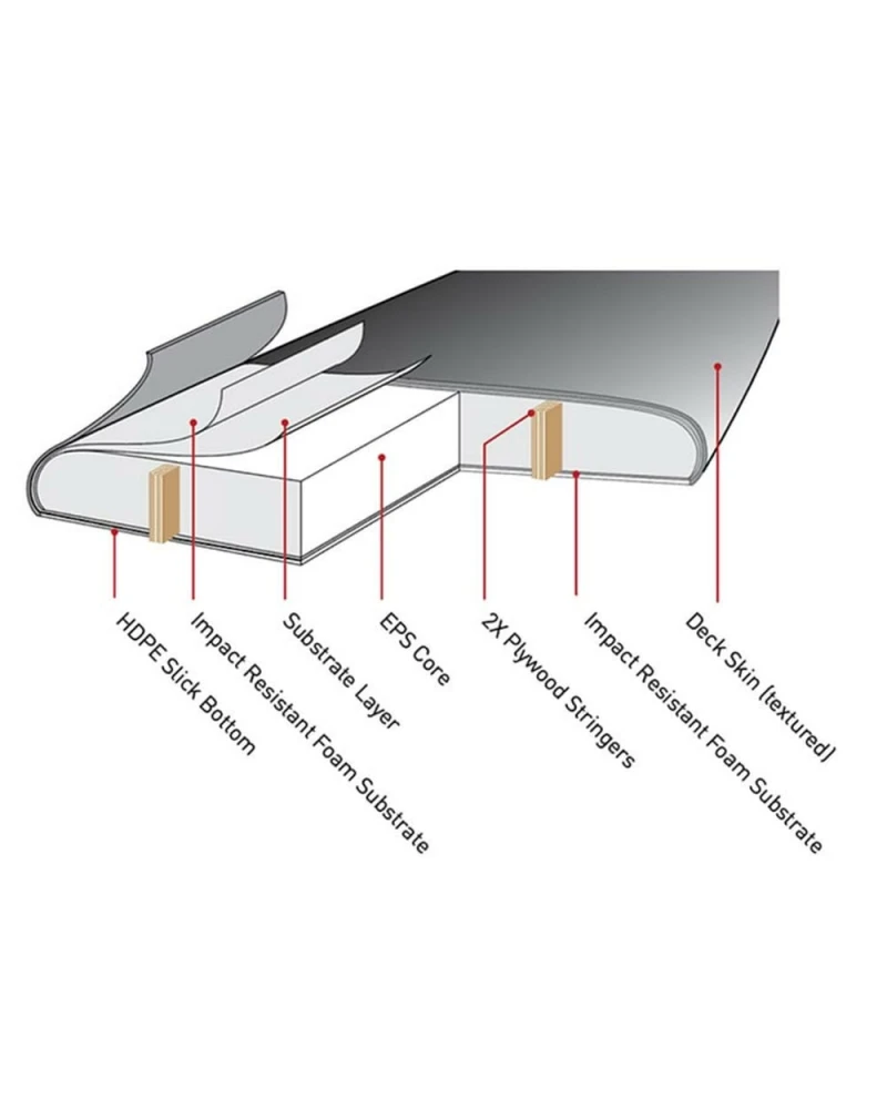 - EPS Core – Wasserfest und leicht. Ein dreifacher Stringer erhöht die steifigkeit des Boards und hält den Rocker auch bei starker Beansruchung