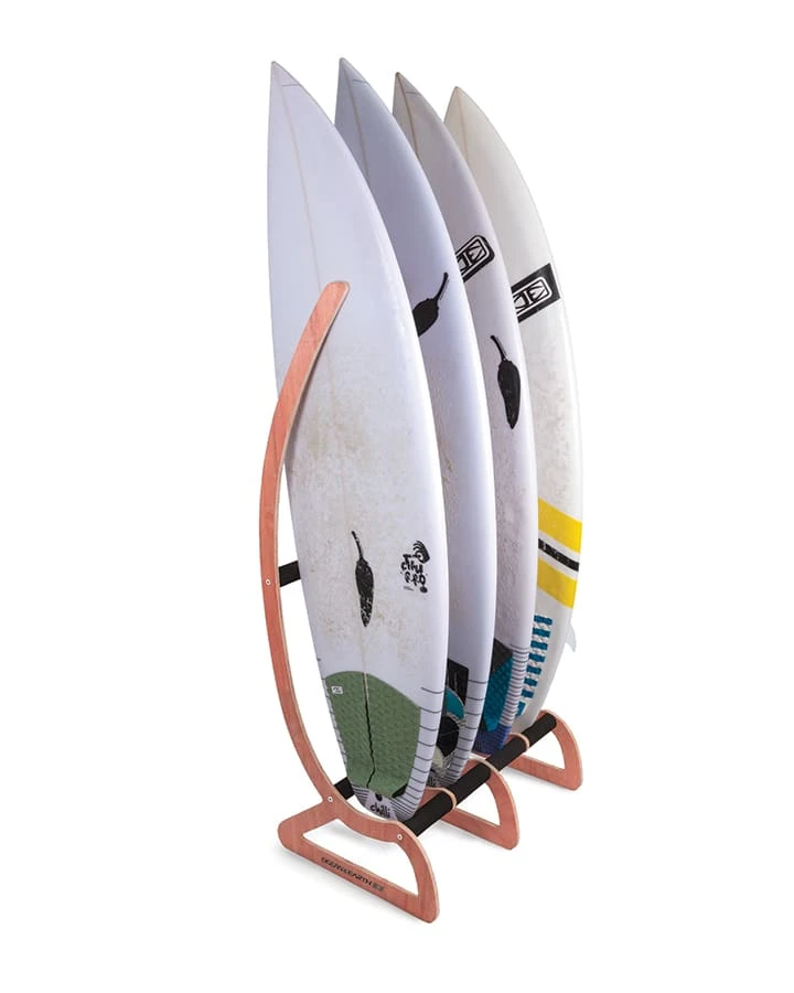 Mit den Ocean & Earth Timber Free Standing Racks kannst du deine Surfboard super parken und hast dabei noch einen wirklichen Hingucker im Raum stehen. Egal ob vor der TĂŒr oder direkt im Wohnzimmer, mit diesem Rack kannst du 4 Board einzeln oder bis zu 8 Board im Doppelmodus sicher abstellen. Dabei sind die AuflageflĂ€chen mit 50mm EVA gepolstert. Der BoardstĂ€nder ist freistehend und muss nicht an der Wand fixiert werden.