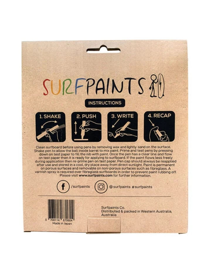 Surfpaints wurden speziell fĂŒr Surfboards entwickelt, aber aufgrund der Beschaffenheit der glatten, konsistenten Acrylfarbe auf Wasserbasis funktionieren sie auf fast allem! Dazu gehören OberflĂ€chen wie Holz, Steine, Leinwand, Kunststoff, Textilien, Keramik und mehr.